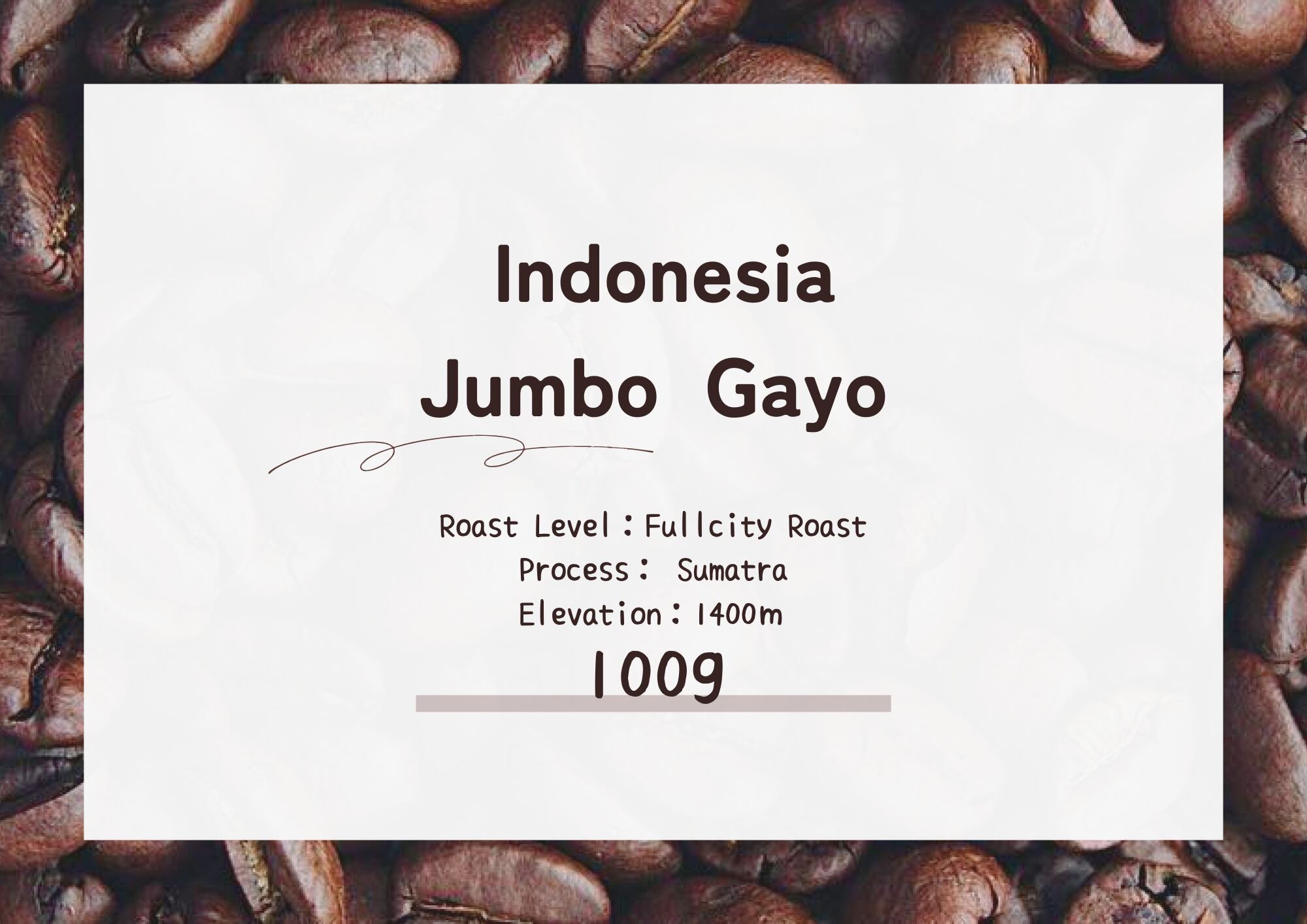商品名:Indonesia Jumbo Gayo 100g